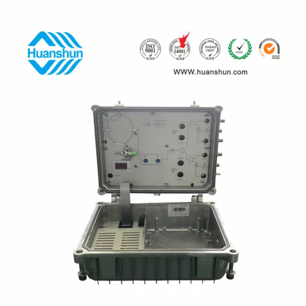 YGS86/10050R野外型四輸出光接收機(jī)是適應(yīng)NGB網(wǎng)絡(luò)構(gòu)架EPON+EOC而設(shè)計(jì)的低光功率光接收產(chǎn)品。本機(jī)選用光電一體化模塊或高靈敏度光電管,低噪聲前置砷化鎵放大芯片,末級采用英國OEI砷化鎵功率倍增放大模塊,最大輸出電平可達(dá)4×104/4×108dBuV(YGS10040R);本機(jī)還配置高精度避雷保護(hù)開關(guān)電源,光控AGC自動(dòng)輸出電平控制,光接收功率LED數(shù)碼顯示,EOC插入器(數(shù)據(jù)通道5~65MHz)。由于主要器材性能優(yōu)越,加上精心設(shè)計(jì)的電路配合,從而保證了性能指標(biāo)高,可靠性好。同時(shí),為解決運(yùn)營商設(shè)備管理和雙向網(wǎng)改造之便,本機(jī)增加了可選型網(wǎng)管應(yīng)答器有EOC雙工器,通過以太網(wǎng)絡(luò)可實(shí)現(xiàn)HFC網(wǎng)管系統(tǒng)監(jiān)控和EOC插入功能。